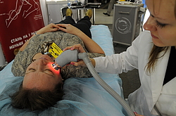 "Крокус-Экспо. Международная выставка парфюмерии, косметики, парикмахерского оборудования и аксессуаров ""Интершарм - 2008"". На снимке: устранение морщин с помощью косметологического аппарата Debussy Termodermie"